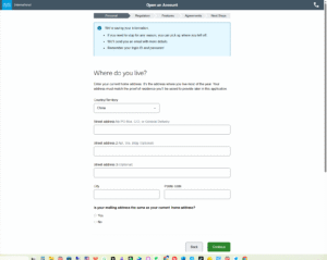 访问注册入口后,点击右上角 “Open An Account”,下滑至 “Choose your country/region of residence”,选择对应地区(如 “CHINA”)。